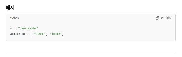 - 즉, dp[i] = dp[j] and s[j:i] in wordDict 조건을 만족하는 j가 존재하면 됩니다.