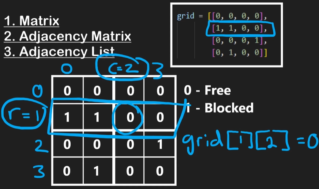 => matrix 행렬 또는 adjacency list 인접 리스트 를 사용해서 문제 품!!