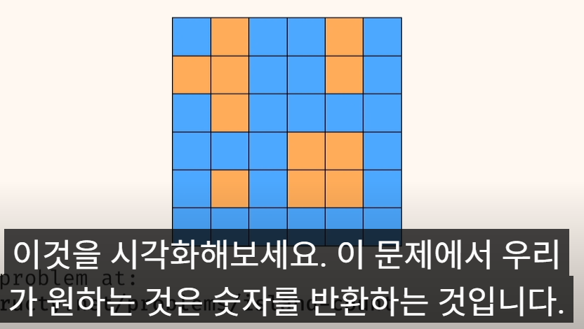 if explore(grid, r, c, visited): # True이면, 섬 탐험이 끝났으므로, count 증가