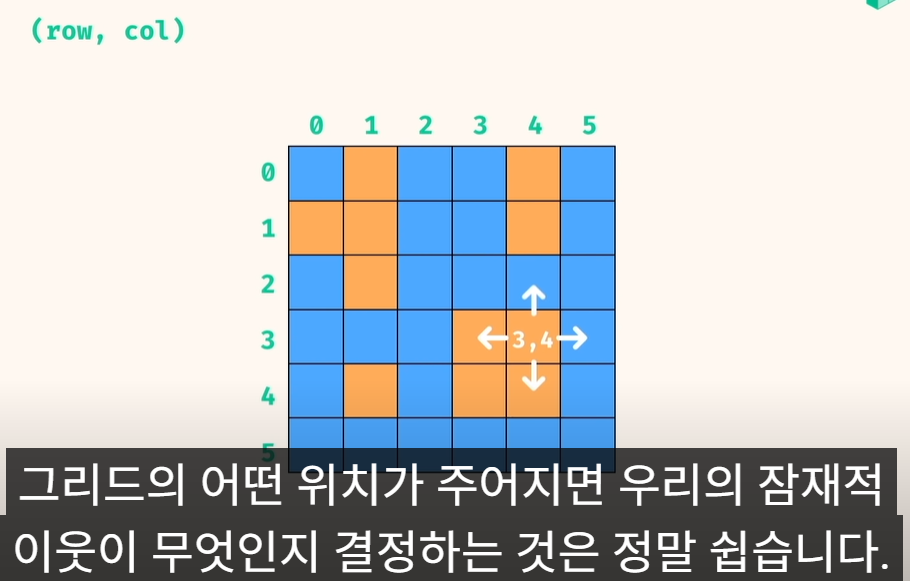 if not rowInbounds or not colInbounds: # 그리드 범위 내 체크를 제일 먼저 해야 함!!