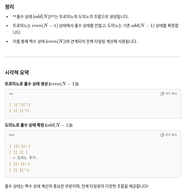 - 홀수 상태는 트로미노 타일 일부가 덮여 "비대칭적" 상태를 만들어내는 것을 처리하기 위해 도입되었습니다.