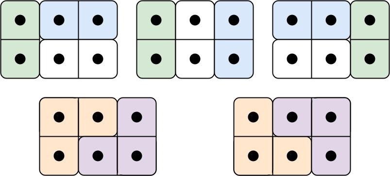 - 트로미노는 2×3의 공간을 덮으며, 회전 가능성이 있기 때문에 두 가지 방향으로 배치할 수 있습니다: