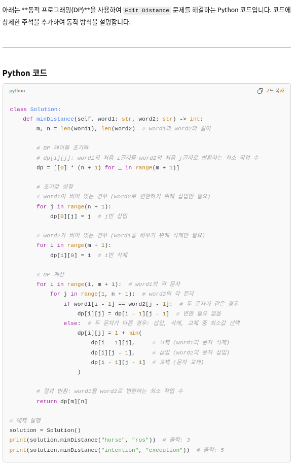 dp[i - 1][j - 1] # 교체: word1[i-1] → word2[j-1]
