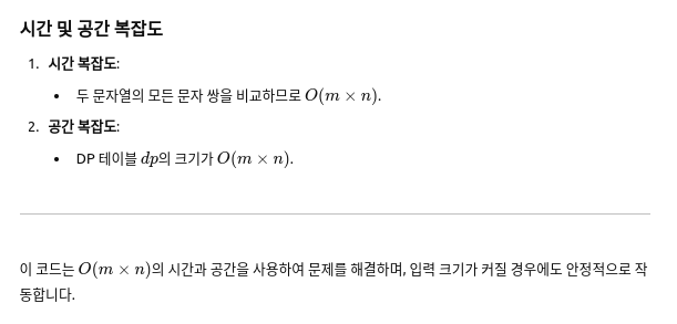 따라서, dp[m][n]은 문자열의 실제 인덱스 m−1과 n−1을 참조함